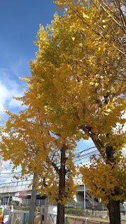 せ~のと放りあげて、ひらひら舞い落ちる銀杏のシャワー