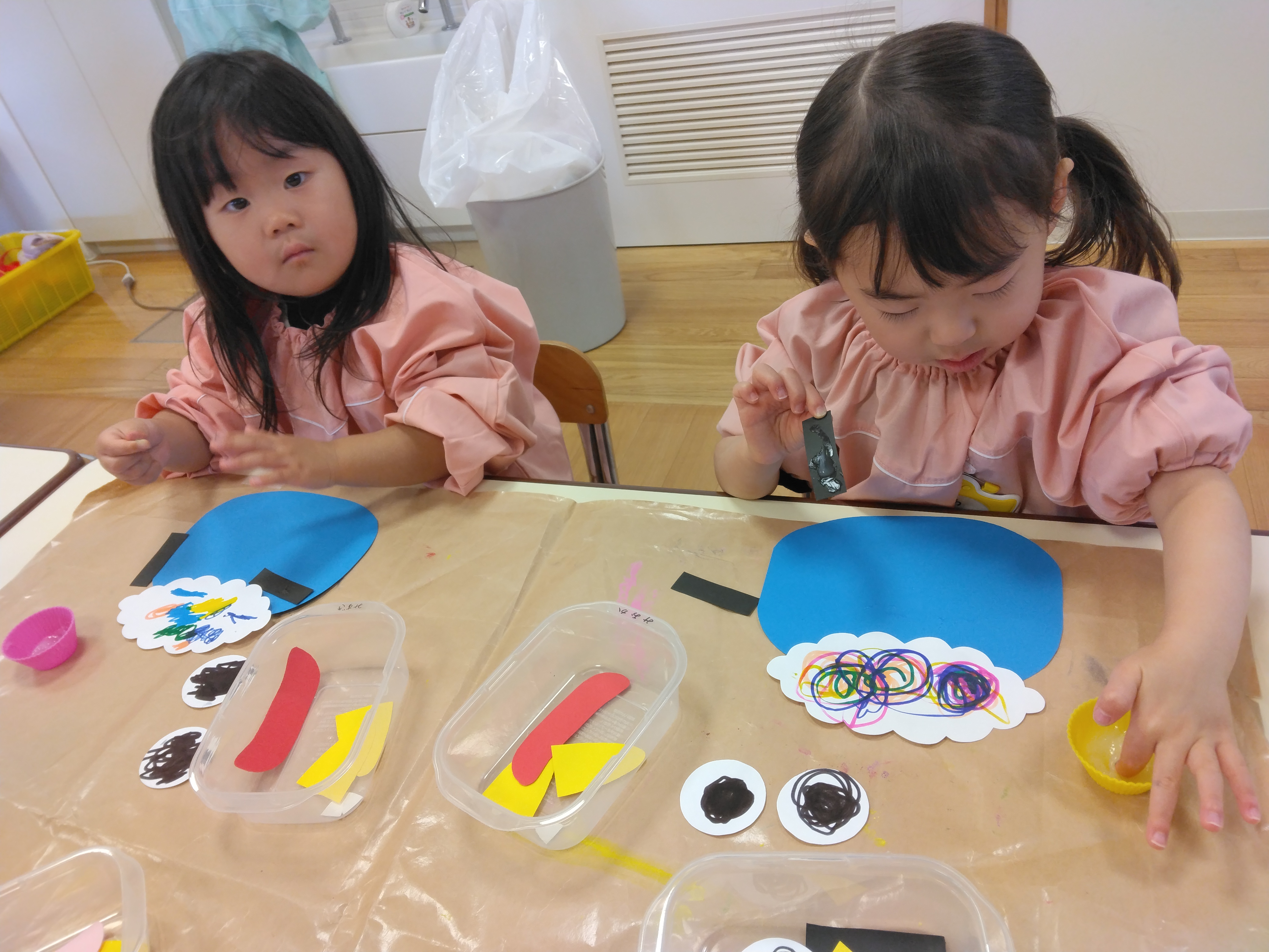 節分の豆まきに向けてみんなでおにのお面を作りました。