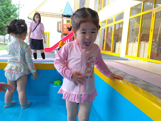 指を指し「せんせい‼」「プールある!!」と大興奮でした。