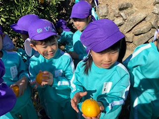 「高速に乗って行くの!?」「みかん10万個食べよ!」前日からワクワクしていた年長さん。バスの中では1番にみかん畑を見つけよう!と窓にしがみつく姿が可愛らしいです。